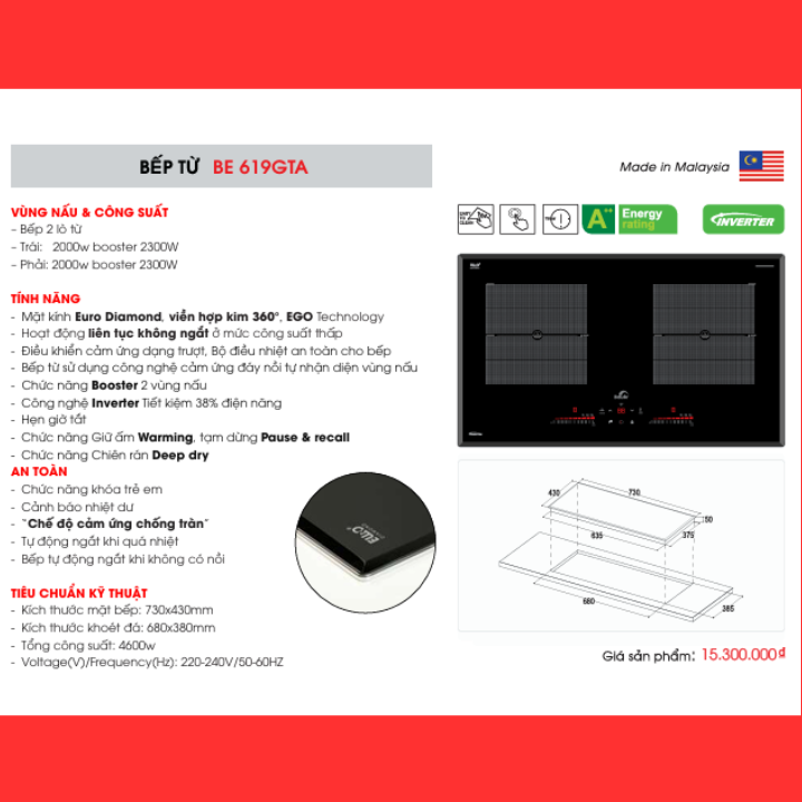 - ♻️ĐẶC TÍNH SẢN PHẨM: Bếp từ Bauer BE BE 619GTA
