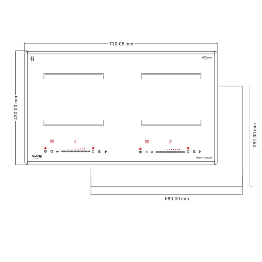 Kích thước bếp: 730x430mm