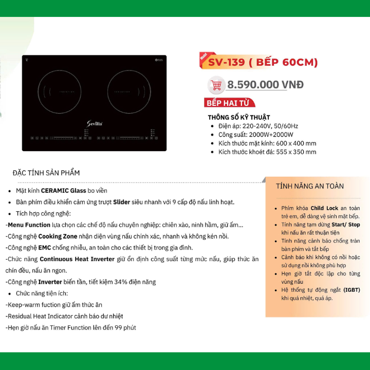 -Model SV-139 sử dụng 2 vùng nấu cảm ứng từ