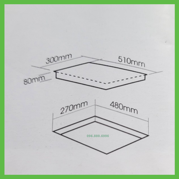 Kích thước mặt kính 510x300mm