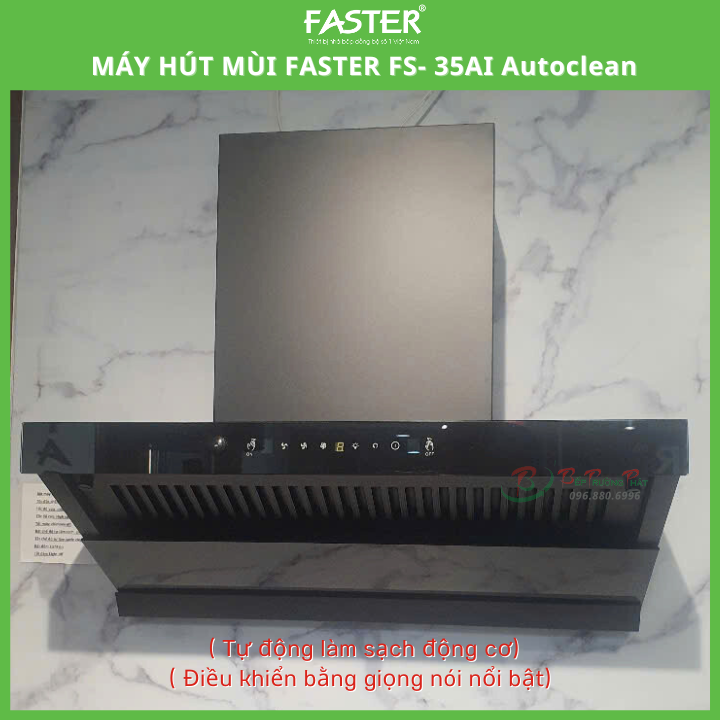 Máy hút mùi Faster FS-35AI Autoclean với bảng điều khiển cảm ứng vẫy tay không cần chạm và đặc biệt nổi bật là có tính năng "điều khiển bằng giọng nói" cùng 3 cấp độ hút gió,công suất hút tối đa lên đến 1000 m³/h sẽ khử sạch tất cả các mùi thực phẩm dầu mỡ mang đến không gian thoáng đãng dễ chịu cho ngôi nhà bạn.