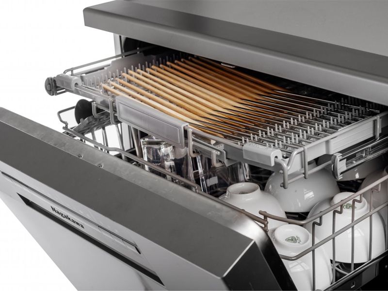 Thiết kế 3 tầng giá xếp đồ tiện lợi, tối ưu hóa không gian với khả năng điều chỉnh linh hoạt khoảng cách tầng giữa thêm 5 cm, giúp dễ dàng sắp xếp các nồi cao, đĩa rộng hay chảo sâu mà vẫn đảm bảo hiệu quả hoạt động tối đa. Hệ thống tay phun 3 cấp cũng đảm bảo nước được phân bố đều, rửa sạch mọi ngóc ngách của bát đĩa.