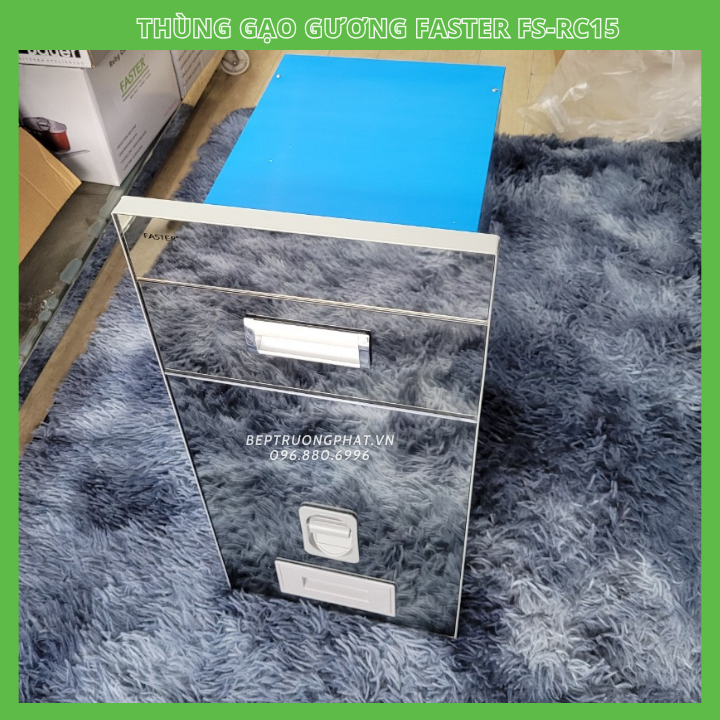 Thùng đựng gạo Faster FS RC 15 được thiết kế âm tủ sở hữu tính năng độc đáo, mới lạ giúp người nội trợ dễ dàng ước lượng tỷ lệ gạo cho một bữa ăn. Đặc biệt với thiết kế âm tủ, thùng đựng gạo Faster còn giúp cho chất lượng gạo không bị hao mòn, tránh được ẩm mốc hay mối mọt. Thiết kế bề mặt bên ngoài bằng gương sáng bóng, giúp bếp thêm sang trọng và sạch sẽ hơn.